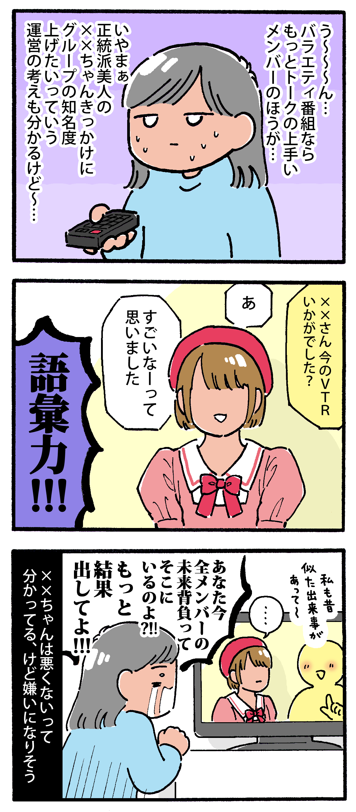 グループ系アイドルを好きになった時は既に売れっ子の段階で好きになってたので、気楽なもんでした