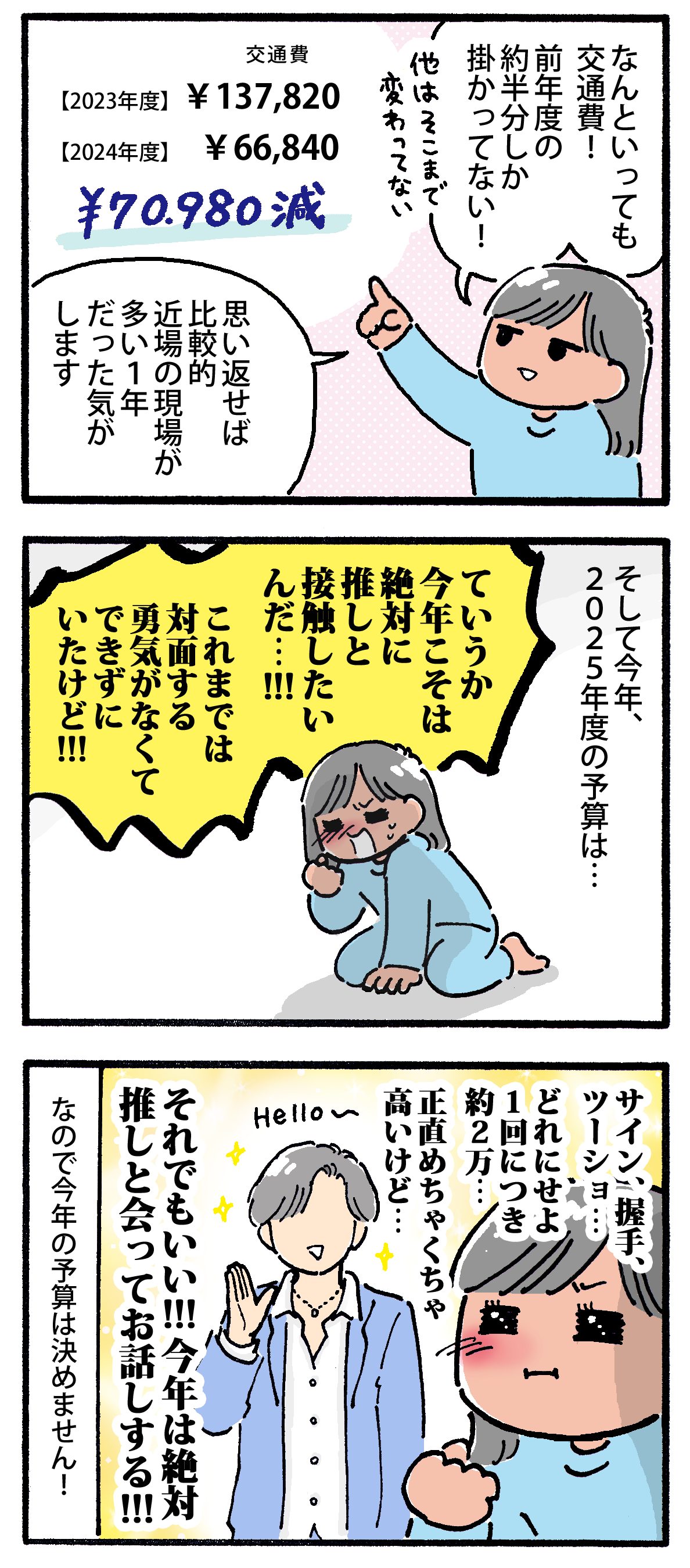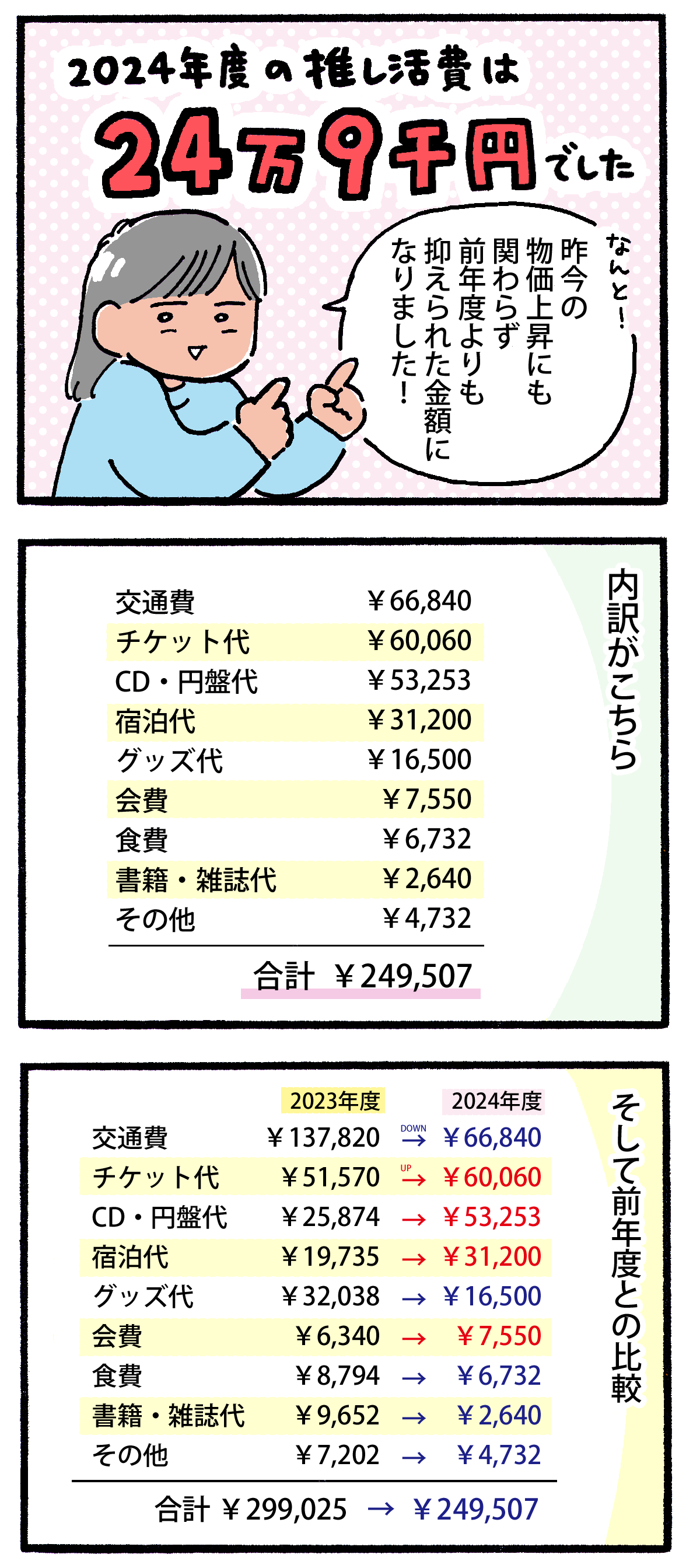 2024年度推し活費まとめ 2025年04月19日 ▼前年度(2023年度)の推し活費まとめ記事▼2万のツーショ…私にとっちゃ高額なんだ…… ▼ランキングに参加しています↓押して応援してもらえると嬉しいです!▼Xとインスタで更新のお知らせしてます < 前の記事次の記事 > コメント コメントフォーム 名前 コメント 記事の評価 リセット リセット 顔 星 情報を記憶 コメントを投稿する