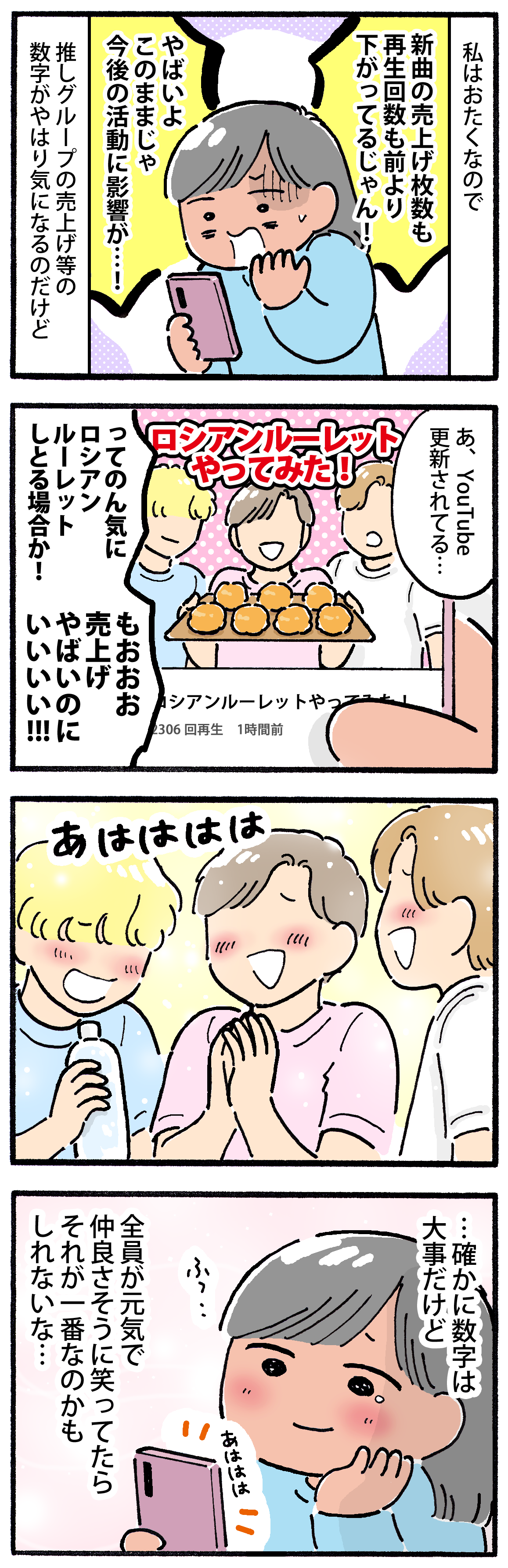 でも推しの笑顔や、グループでわちゃわちゃしている姿を見てるとスーッと息ができるというか、怒りではなく愛情に変わるというか‥