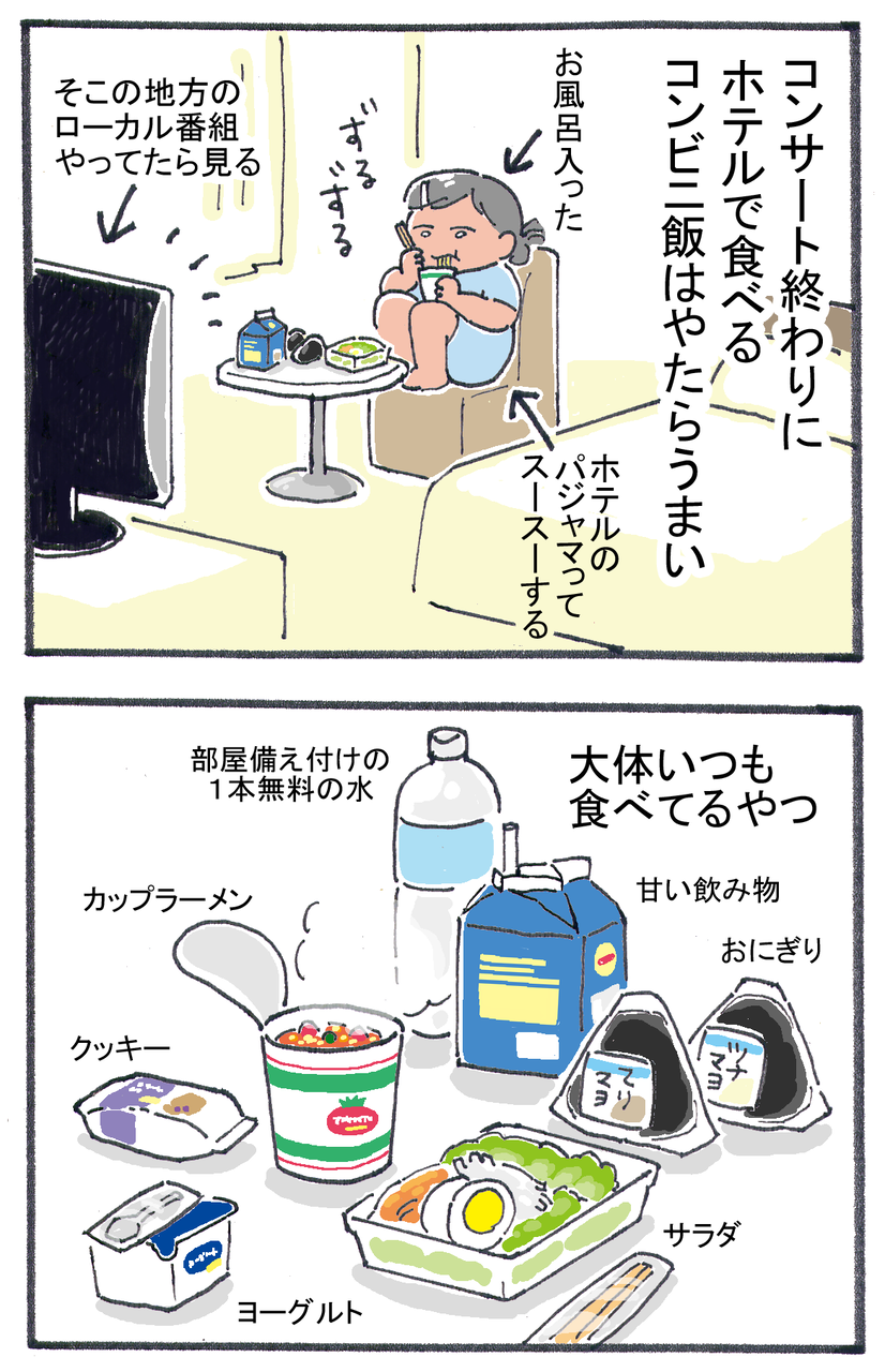 コンサート後にホテルで食べるコンビニ飯